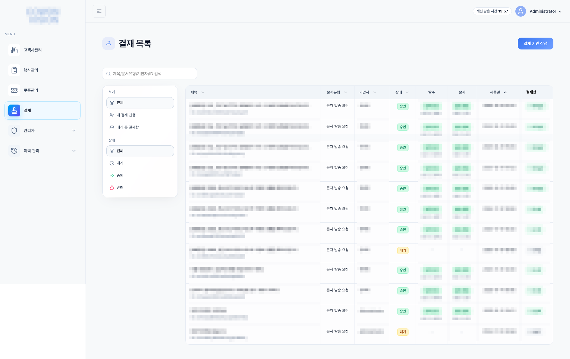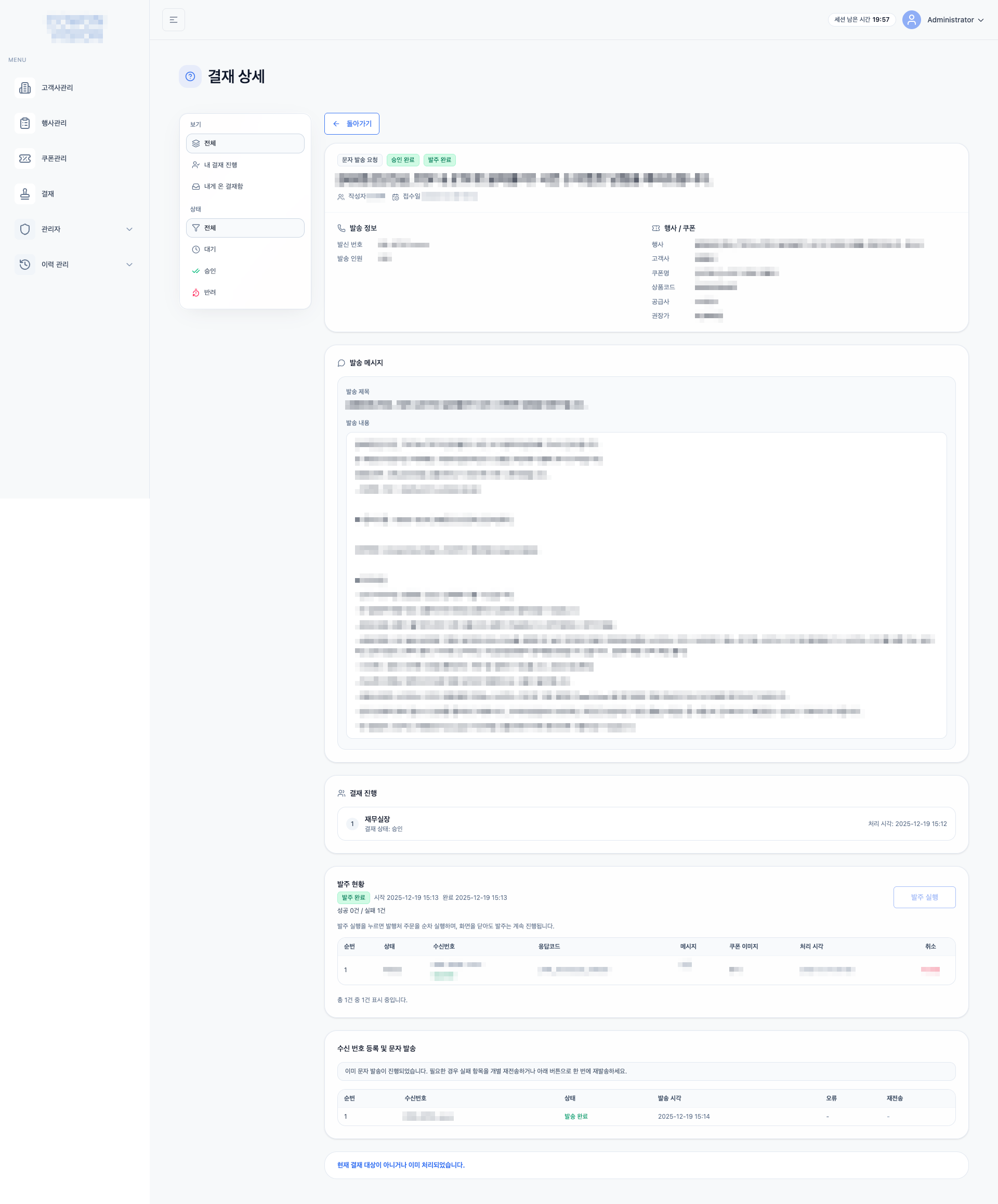 발송 요청을 결재선 기반으로 승인/반려하며 발주·발송 상태와 결과를 추적합니다.