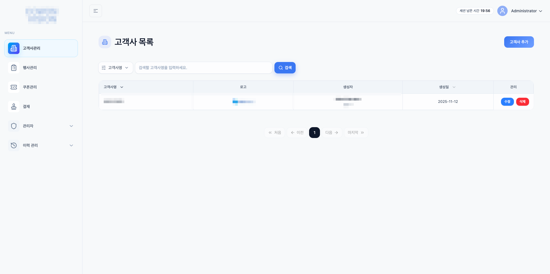 고객사를 관리하고 고객사 로고를 설정해 기프티콘 이미지에 시스템 상에서 로고와 이미지를 결합합니다.