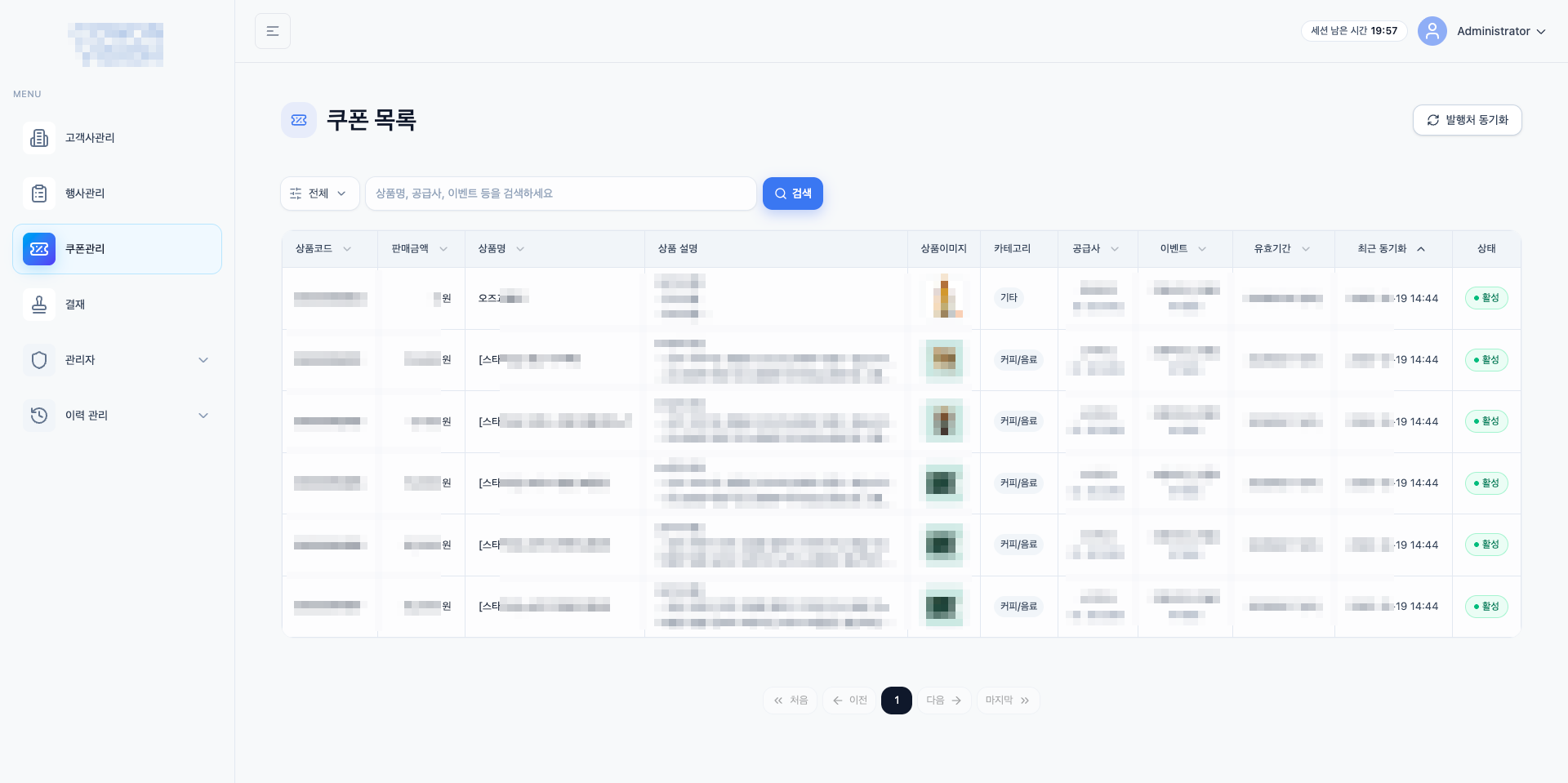발행처 상품/쿠폰 데이터를 조회·필터링하고 동기화로 최신 상품 정보를 유지합니다.